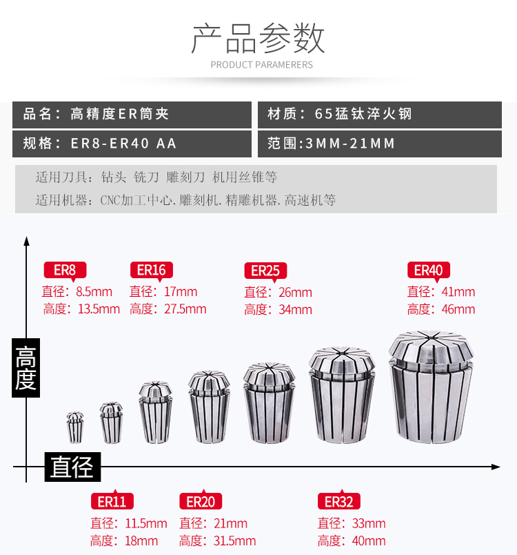 Culvert numerical control ER8 high-precision cylinder clamp double A level Sonozzle machining center numerical control shank engraving machine elastic clamping head