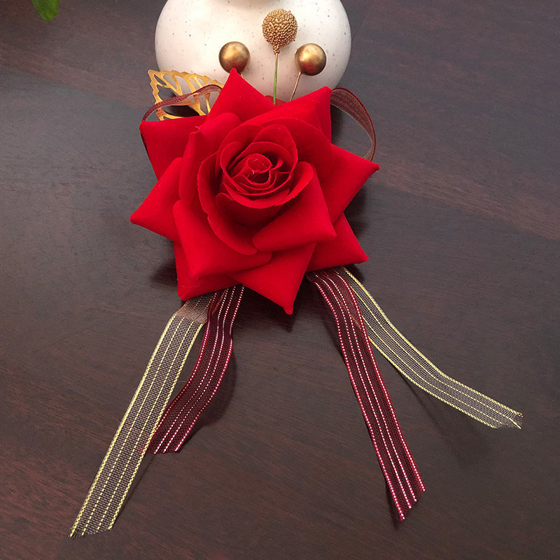 Opening ceremony Ribbon-cutting corsage VIP guests welcome simulation rose leadership Retro Chinese style