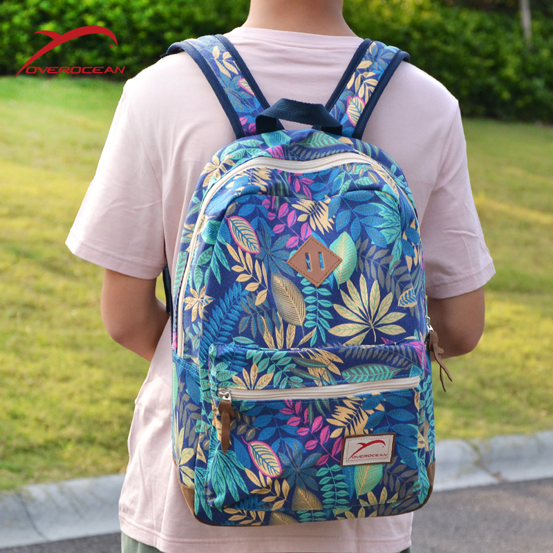 OVEROCEAN printed backpack female Korean version of the portable backpack large capacity travel bag Middle school school school bag