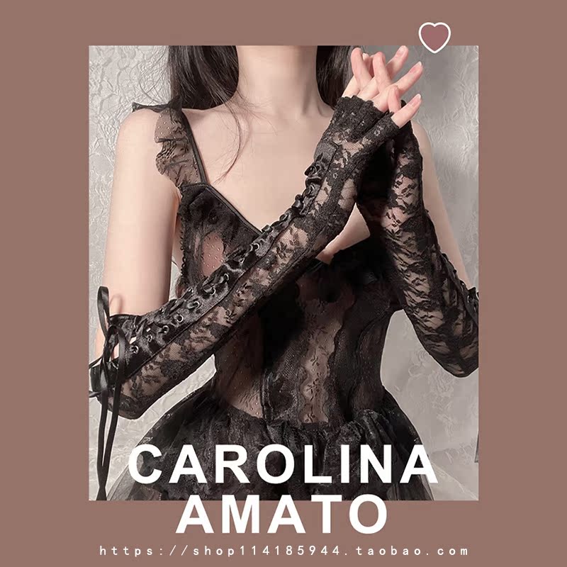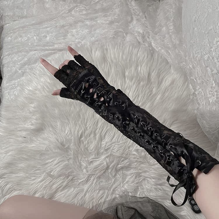 Openwork transparent sexy lace straps, bar-fingered long gloves, black vintage-inspired lingerie accessory