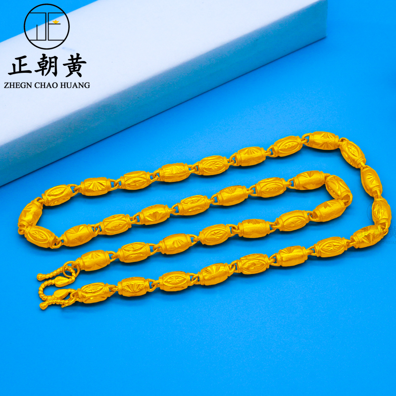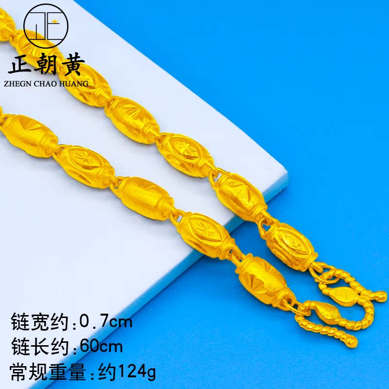 Matt solid plated sand gold necklace male bean bead large gold necklace with frosted frosted gold plated simulation gold for long time