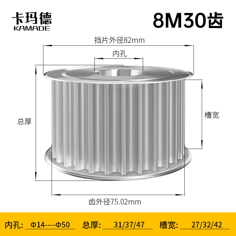 Two sides flat 8M30 teeth T through hole synchronous belt pulley AF type groove width 22 27 32 42 42 hole 14-50mm
