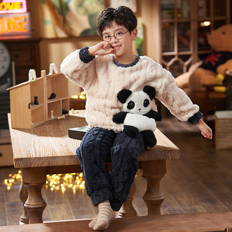Children's pyjamas Coral Suede Winter Boy Thickened child Home Home Suits CUHK Children Warm Flannel Suede Suit