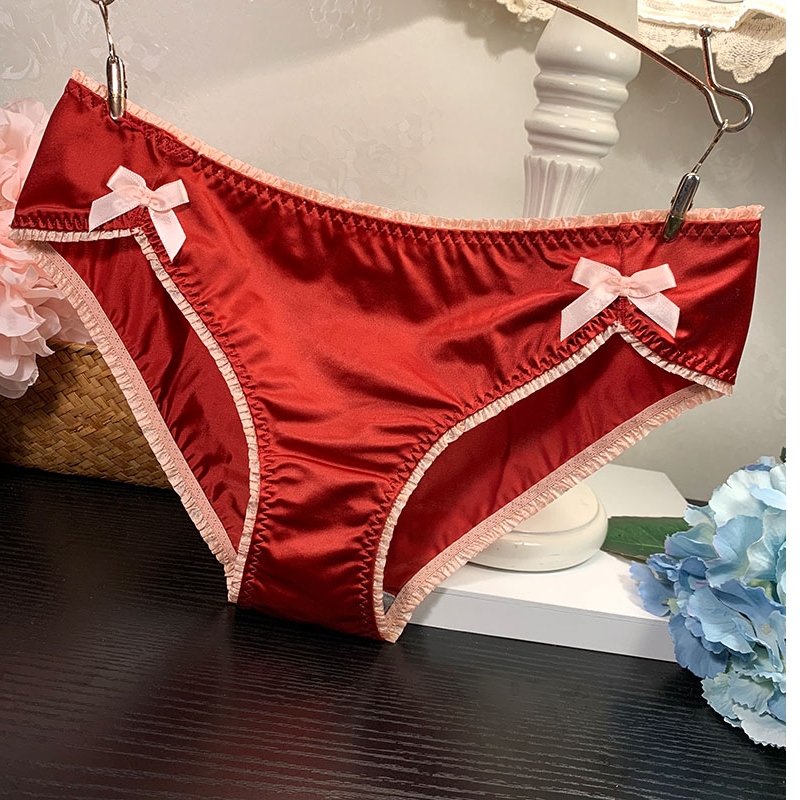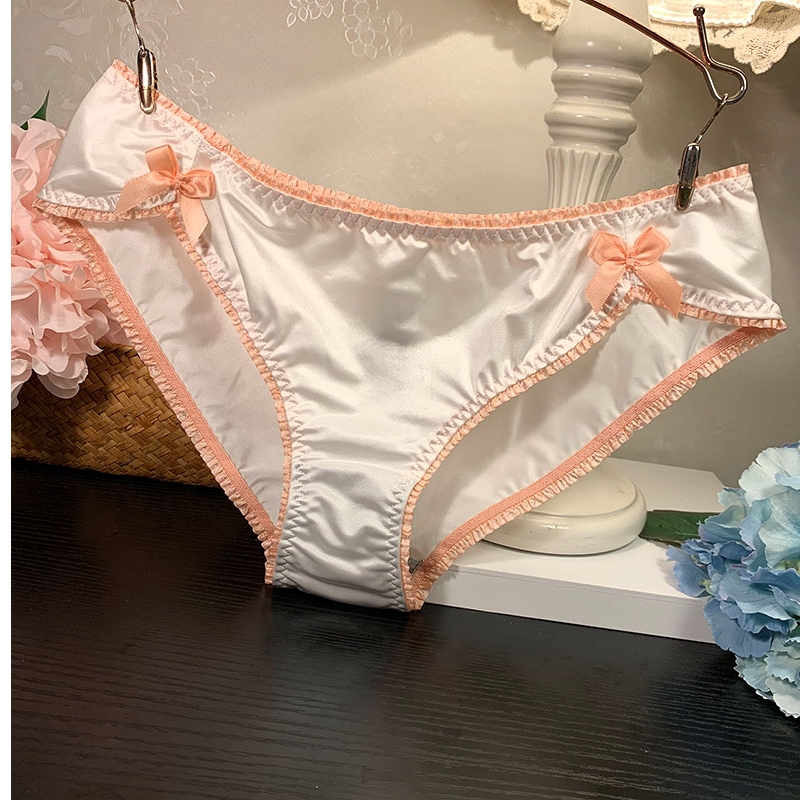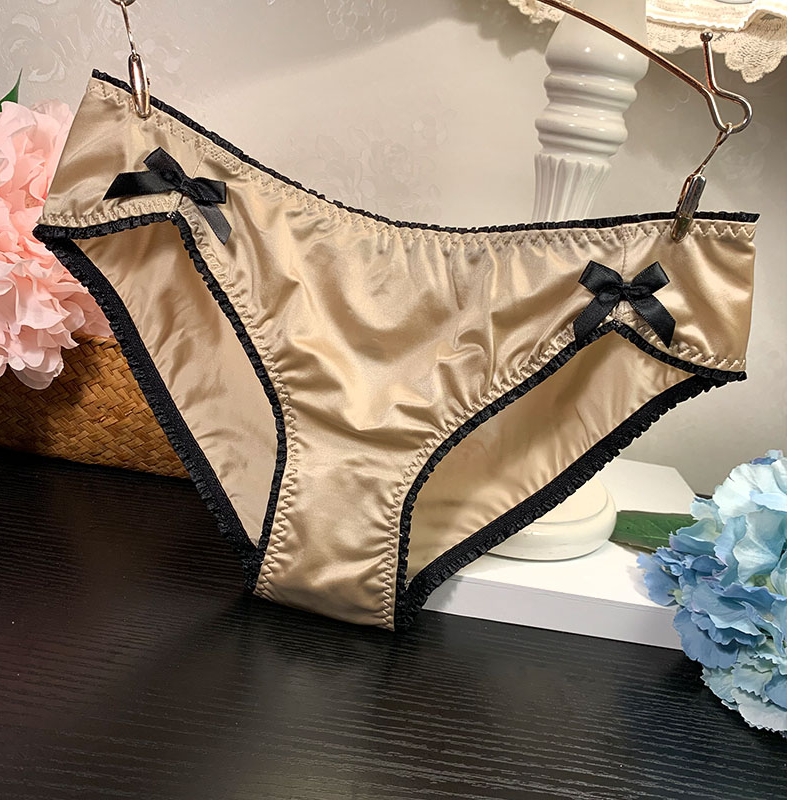 Satin butterfly with polycolored lace slip indelible sexy underwear female middle and low waist pure cotton gear triangle trousers