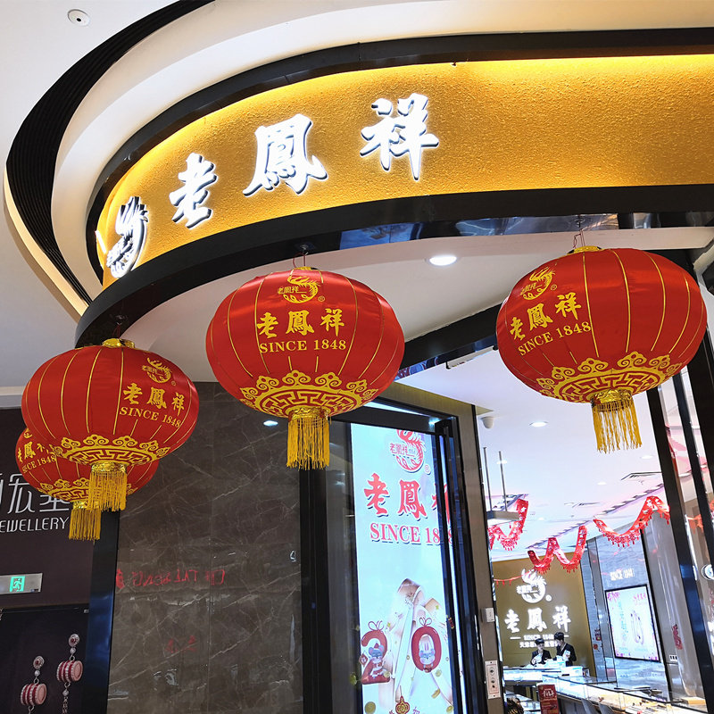 Big red lantern National Day Mid-Autumn Festival printing word decoration flocked silk cloth iron mouth gate outdoor waterproof advertising lantern