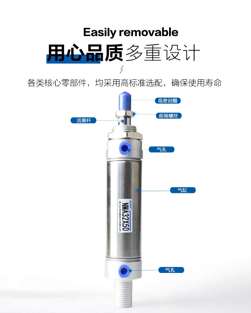 Zhengtai Mini Stainless Steel Small Cylinder Pneumatic MA32 25X50X75X100X125X150X200X300