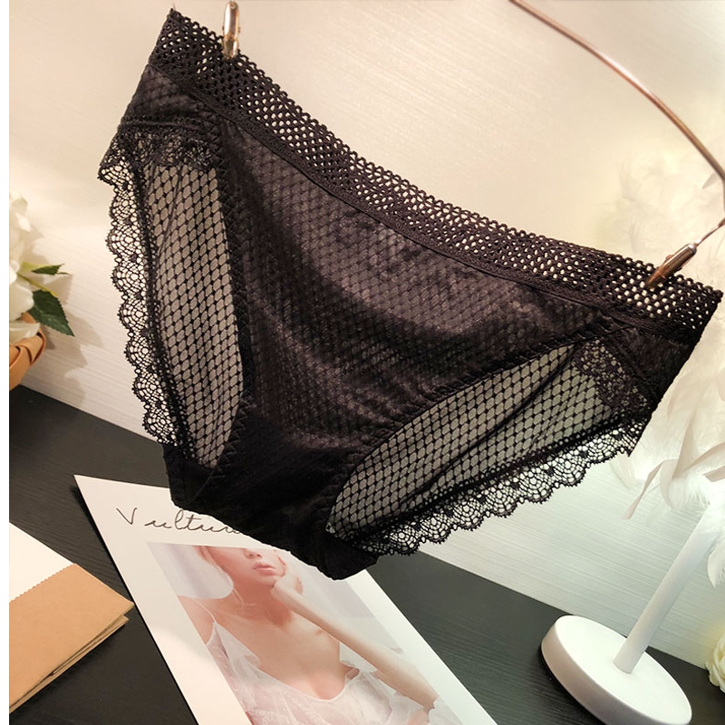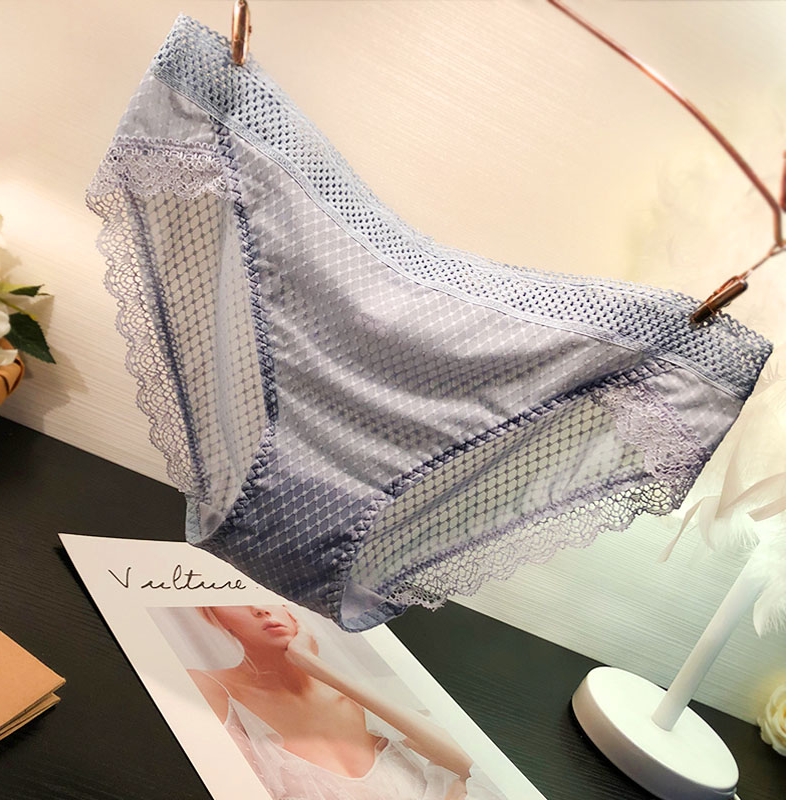 European and American Traceless Lace Pants Women Feel Comfortable Pure Cotton Crotch Pure Color Mid Low Waist Triangle Pants Head Women Summer Breathable