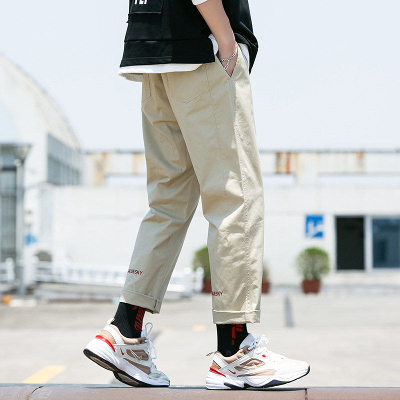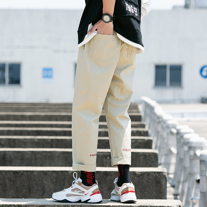 Cargo Pants Men's Leisure Long Pants Korea fashion brand summer cotton autumn loose sports leg bunching nine cent pants
