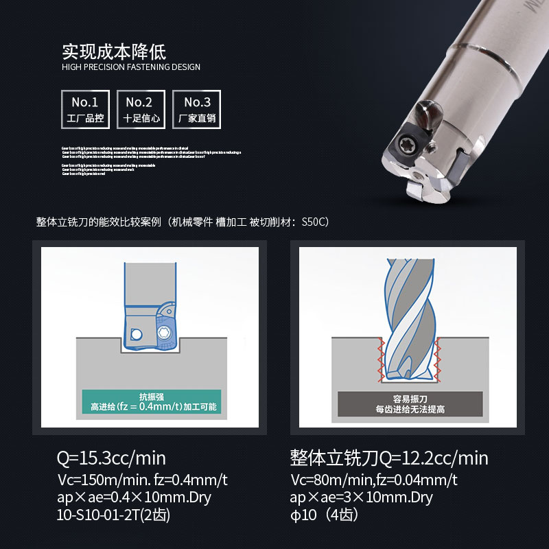 R1 CNC milling blade high-speed fast feed instead of knife grain 10 12 tungsten steel milling cutter to suppress vibration double-edged knife rod