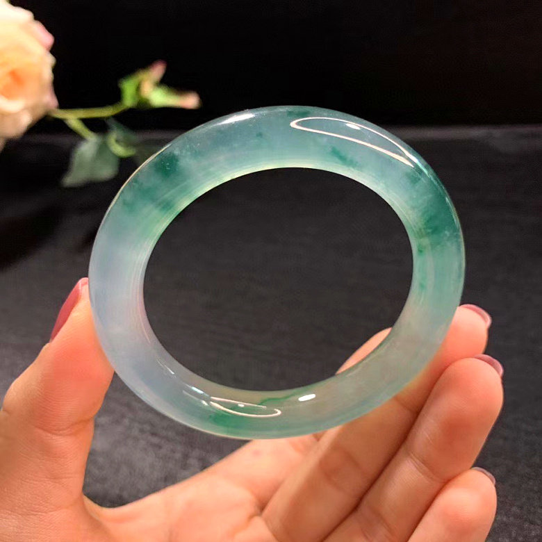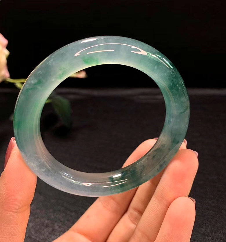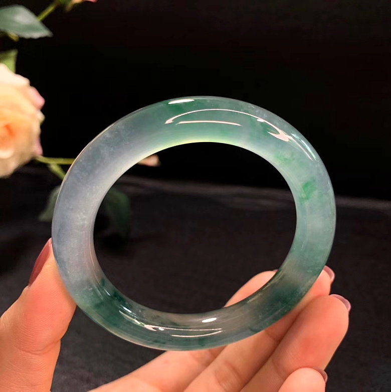 Natural old pit Myanmar ice species floating flower jade bracelet floating green flower positive circle jade bracelet women's counter transparent jade bracelet