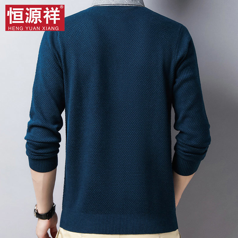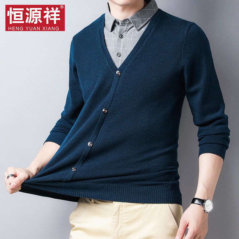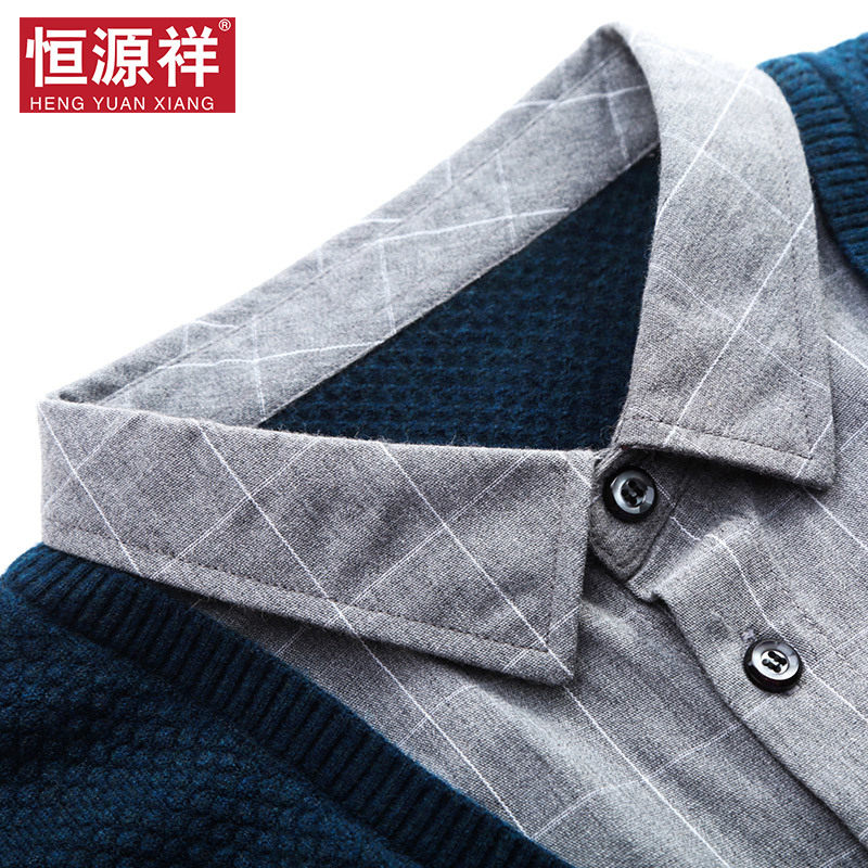 Hengyuanxiang shirt collar fake two pieces loose knit sweater men's sweater autumn fashion top bottoming shirt