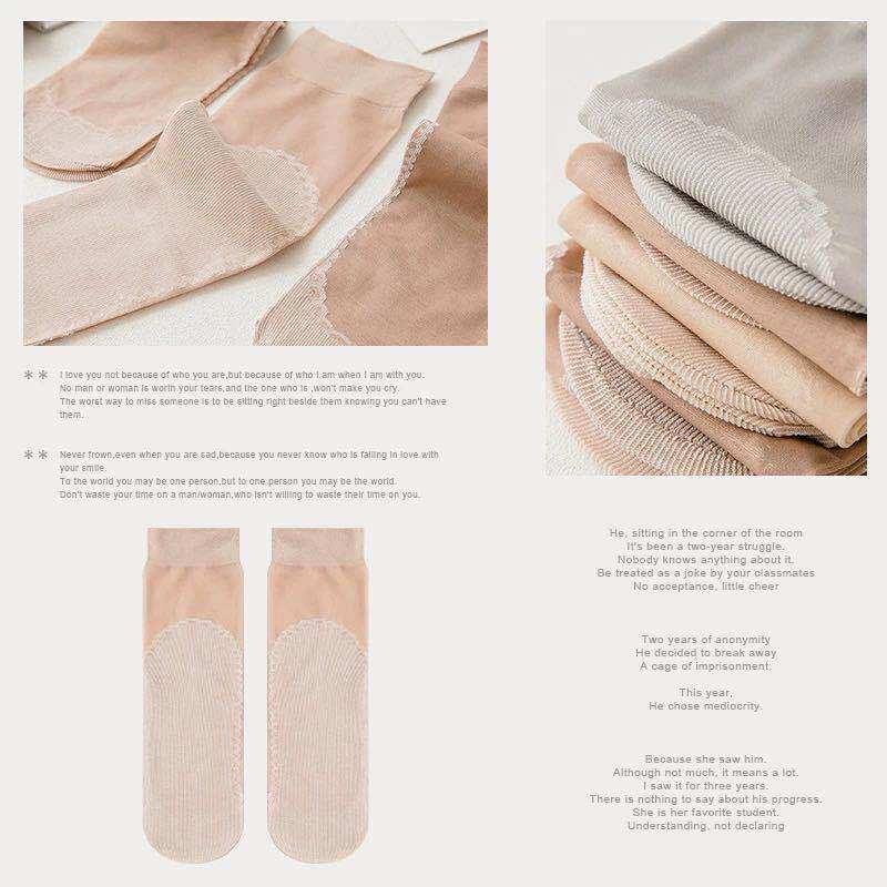 Genelyn 5 20 Pair Socks Female Midcylinder Short Socks Meat Color All Season Cotton Bottom Non-slip Anti Hook Thin lady Silk Sox