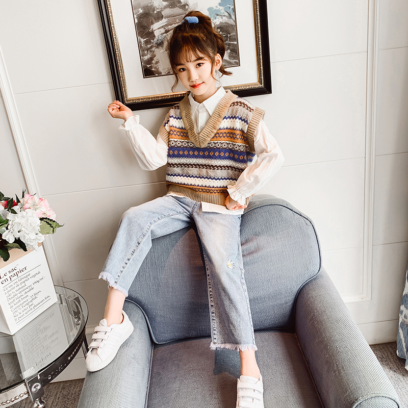 Girl Spring Clothing Online Red Suit Foreign Trend 2022 Autumn New Middle Child Han Version 7 Trendy 8 Three Sets 12 Girl