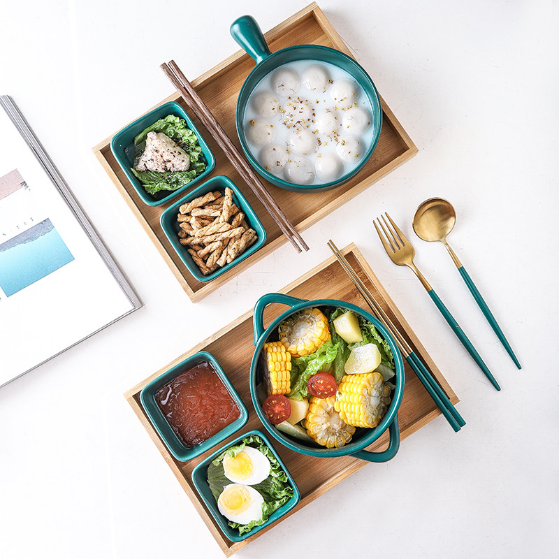 Bowl Chopsticks Bowl DISH SUIT FOR HOME SINGLE SET OF DELICATE DOUBLE EAR SOUP NOODLES BOWL CREATIVE DAY STYLE BREAKFAST CUTLERY CUTLERY