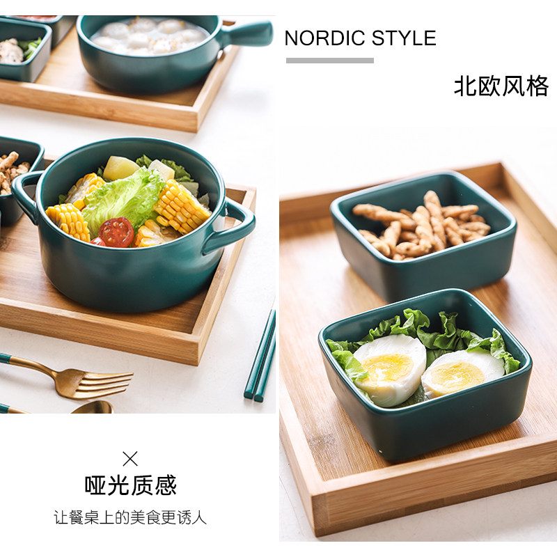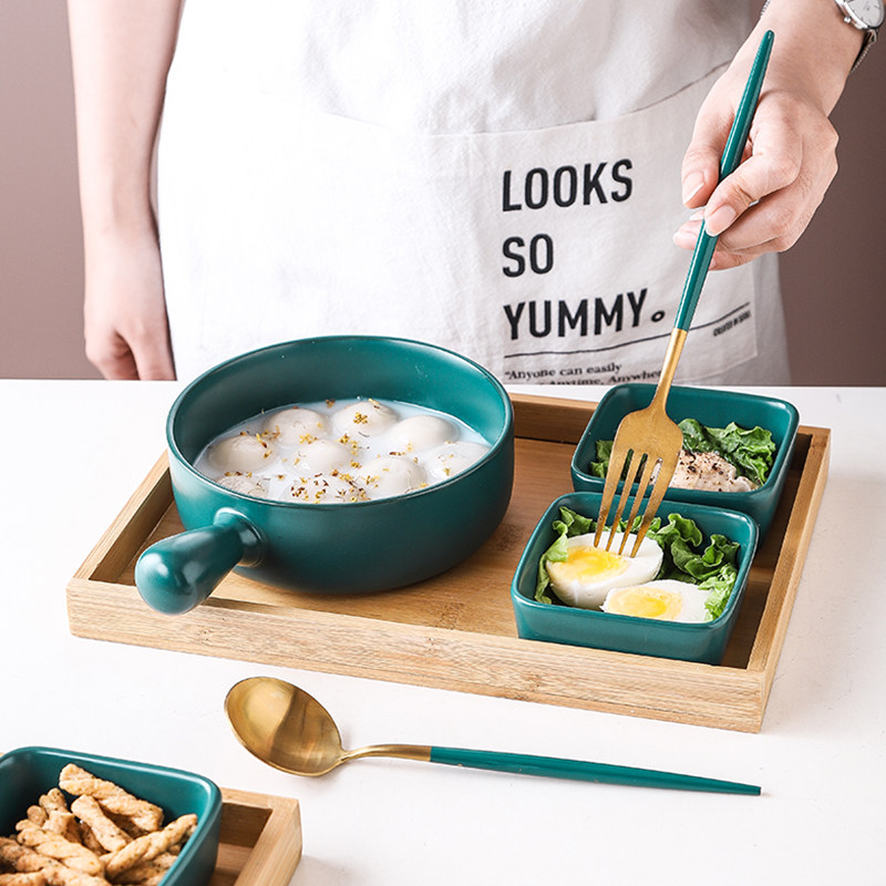 Rice bowls (4 5-inch bowls square dishes * 2 green gold chopsticks) Double ear bowls (stainless steel chopstick fork spoons 7 pieces) Double ear bowls (stainless steel chopstick spoons 6 pieces) Double ear bowls (wooden chopsticks 5 pieces