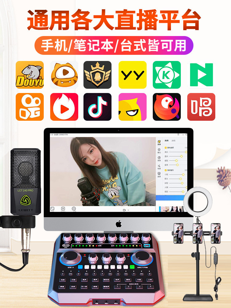 Sound Baile b6 external sound card Mobile phone singing special live broadcast equipment full set of usb desktop computer universal professional-grade microphone Recording microphone shaking net red anchor outdoor K song set