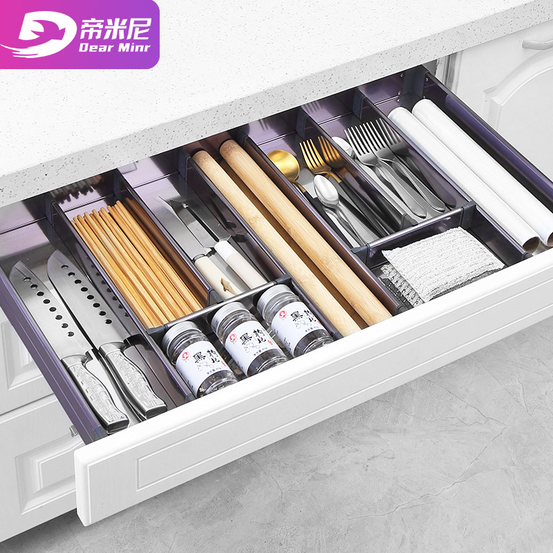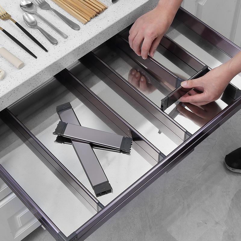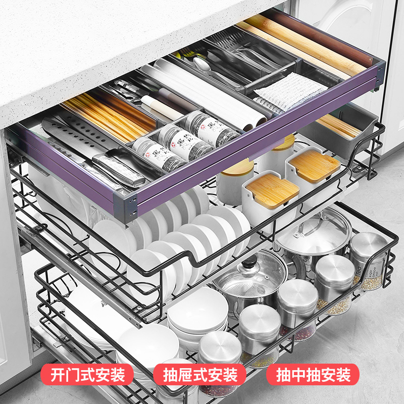 Timini kitchen cabinet pull basket tool basket single layer space aluminum drawer type damping built-in shelf separation storage