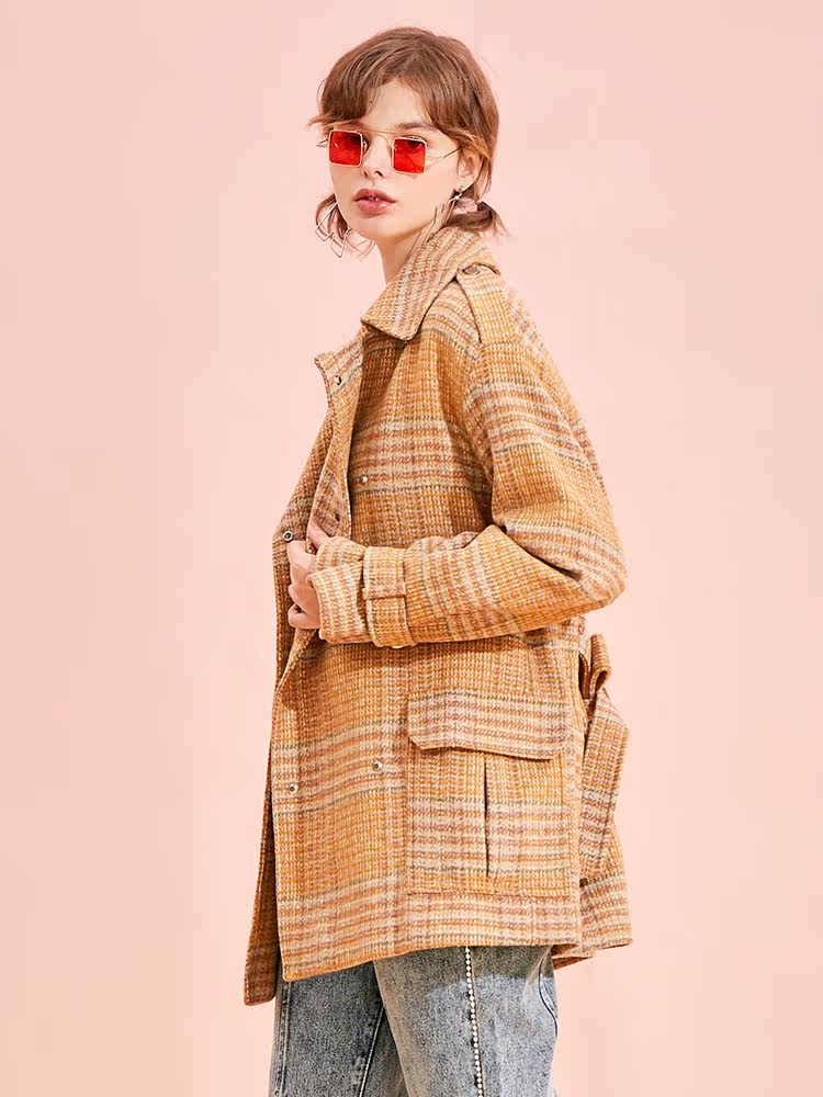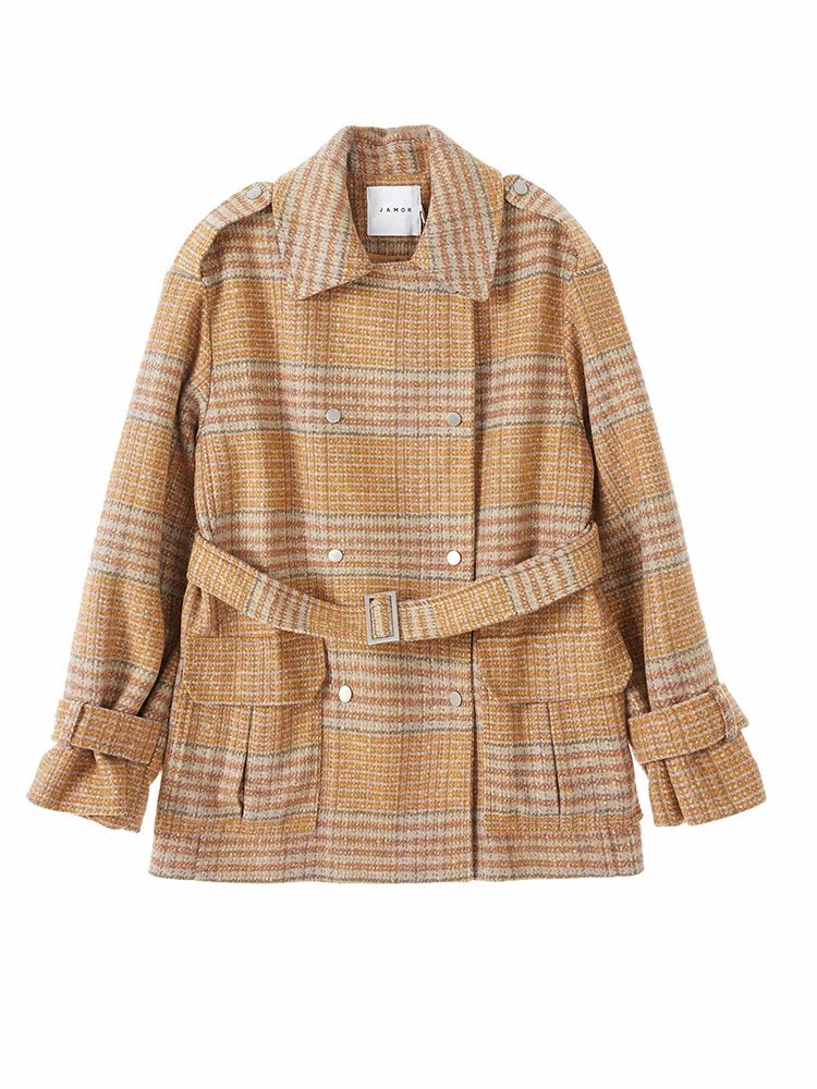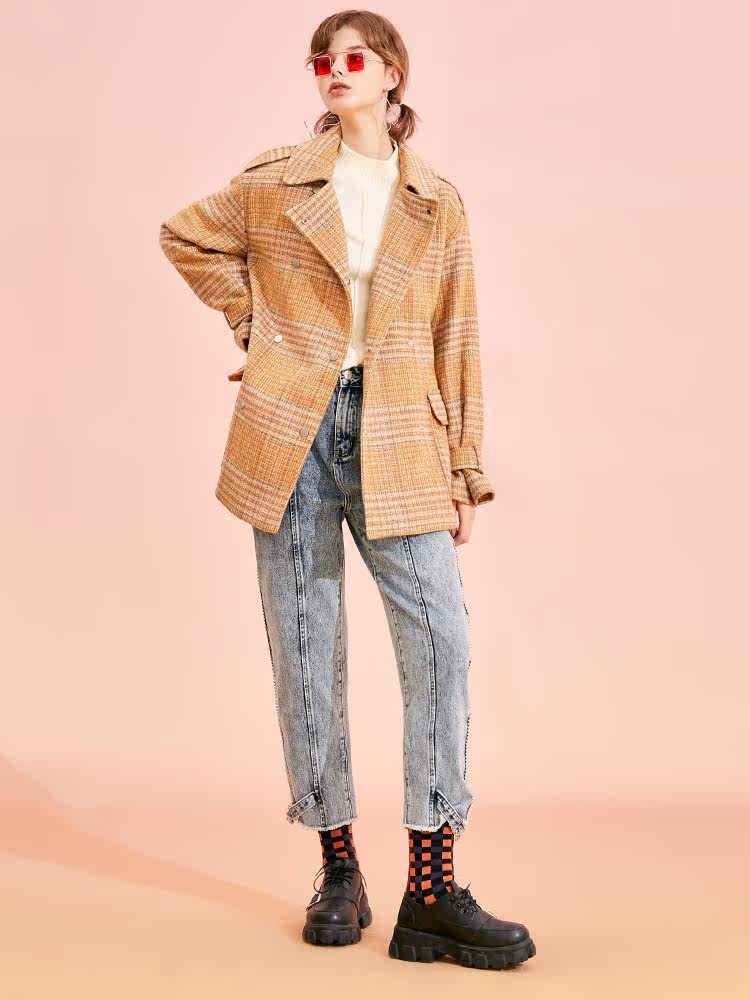 Jamor Spring and Autumn British Suit Collar Casual Jacket Women's Retro Small Shangri-La Wool Coat Yellow