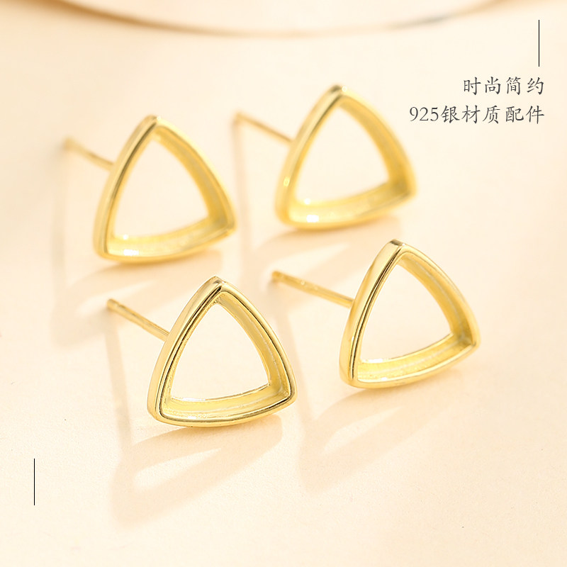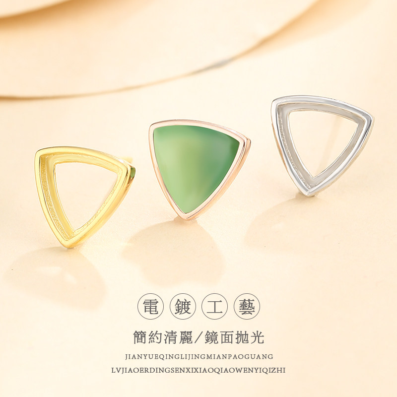 S925 Pure Silver Ear pin hollow Prismatic Triangle geometric ear decorated silver Digy Honey Wax Emerald Jade Earthy