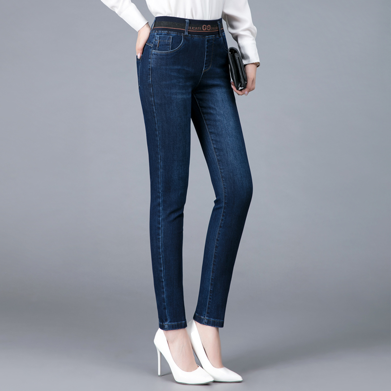 Tight waist jeans girl high spring and autumn 2022 new middle - aged mother lady small feet thin pants