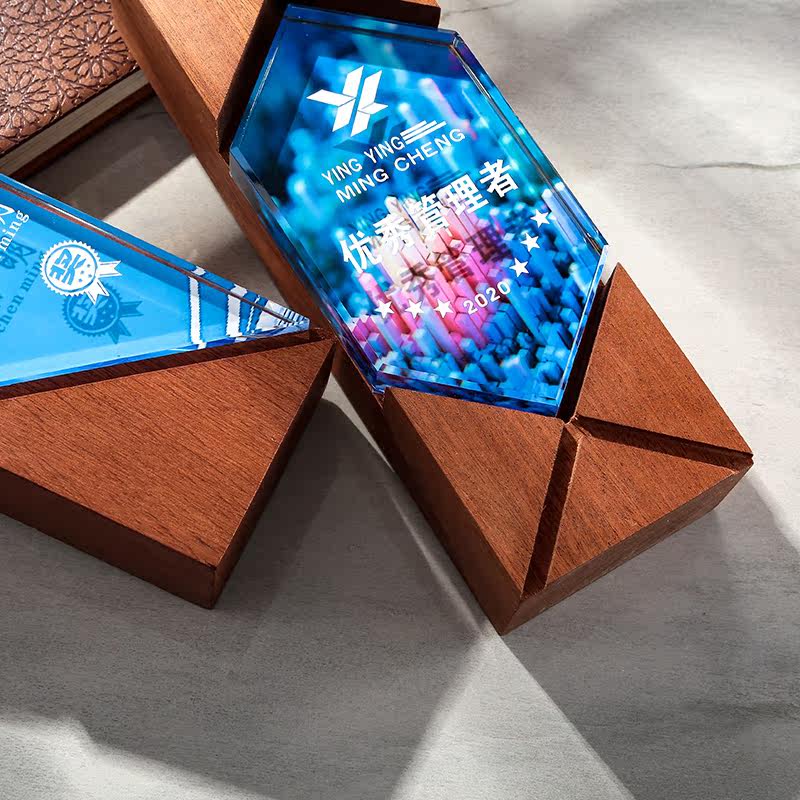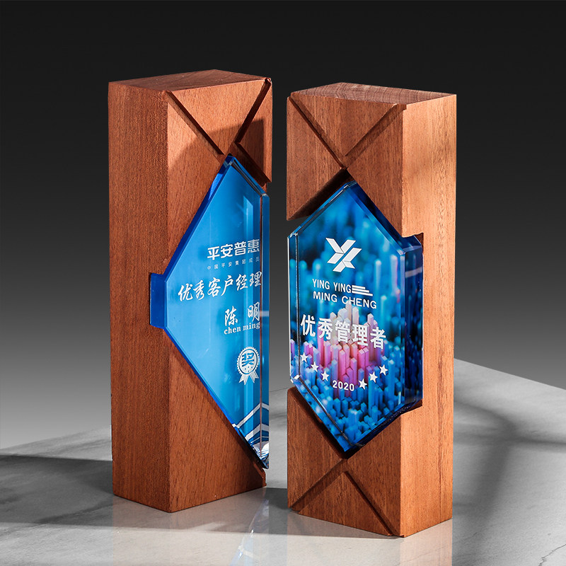 Creative Wooden Crystal Trophy Customized to Do Corporate Corporate Annual Meeting Excellent Employee Medals Champion Honors Awards