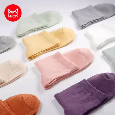 5 pairs of Cat Man socks Women's Mid-tube socks cotton Korean version of college style Japanese cotton spring and autumn trend solid color women's socks