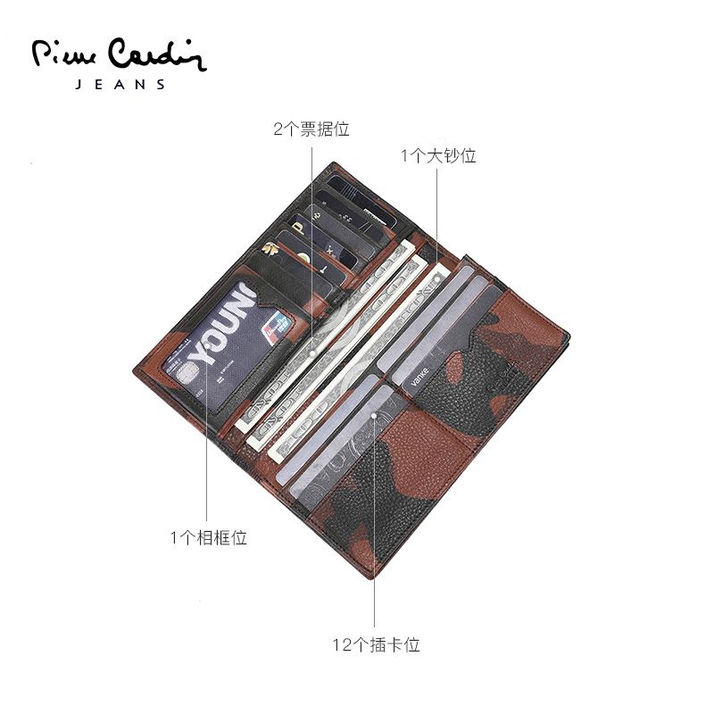 Pierre Carden men's leather wallet fashion personality long version wallet head layer cowhide large capacity youth wallet