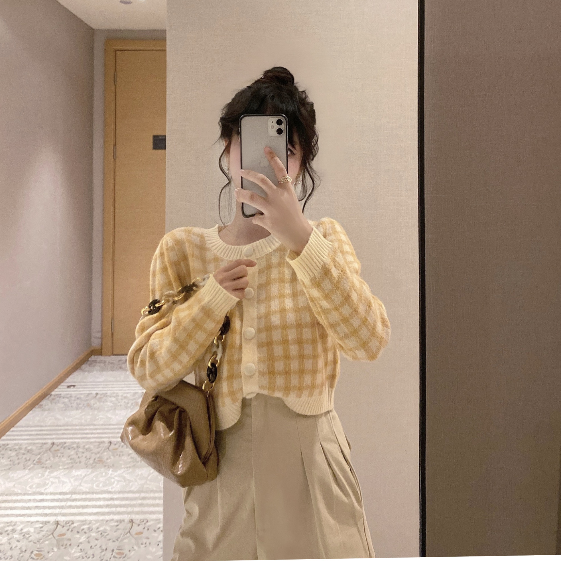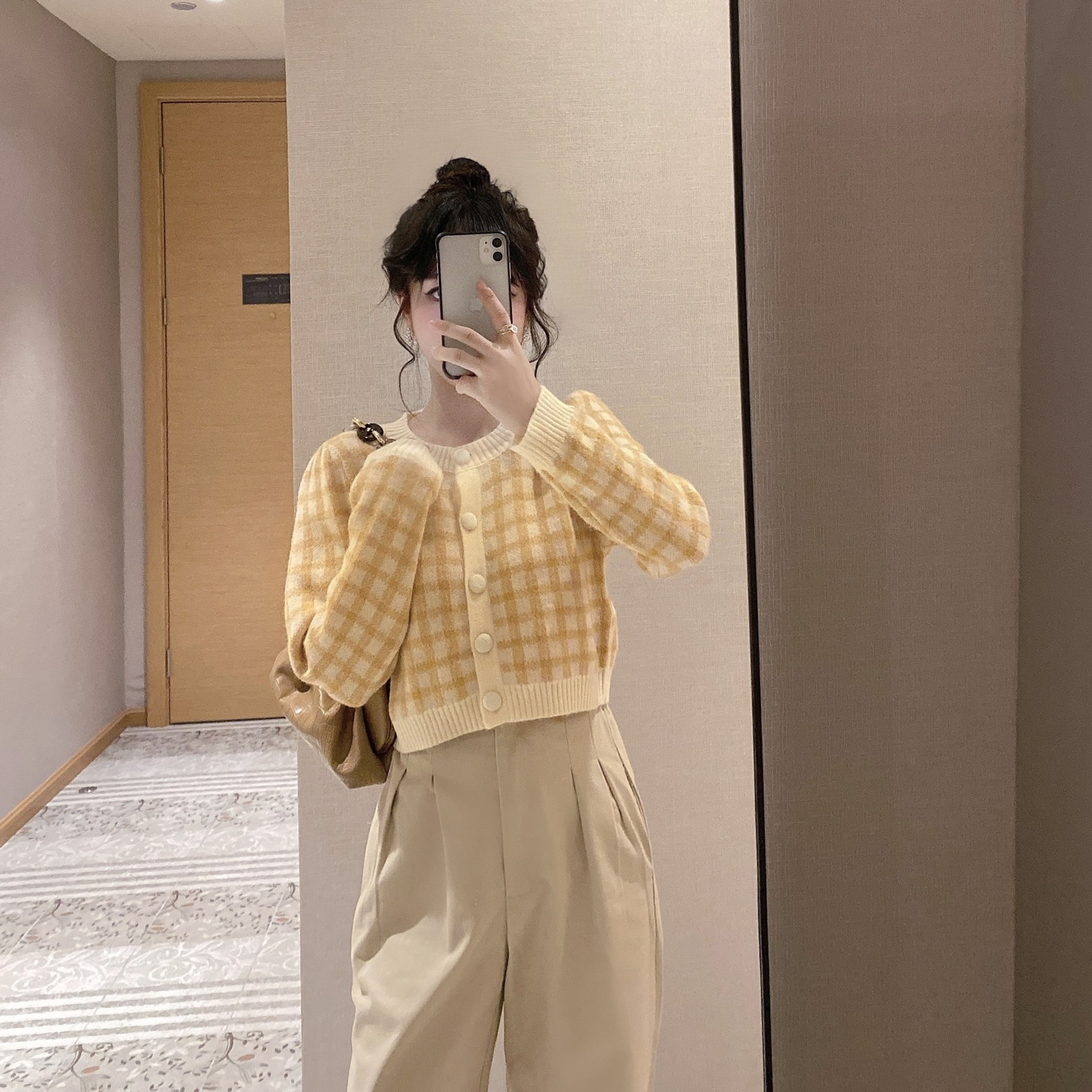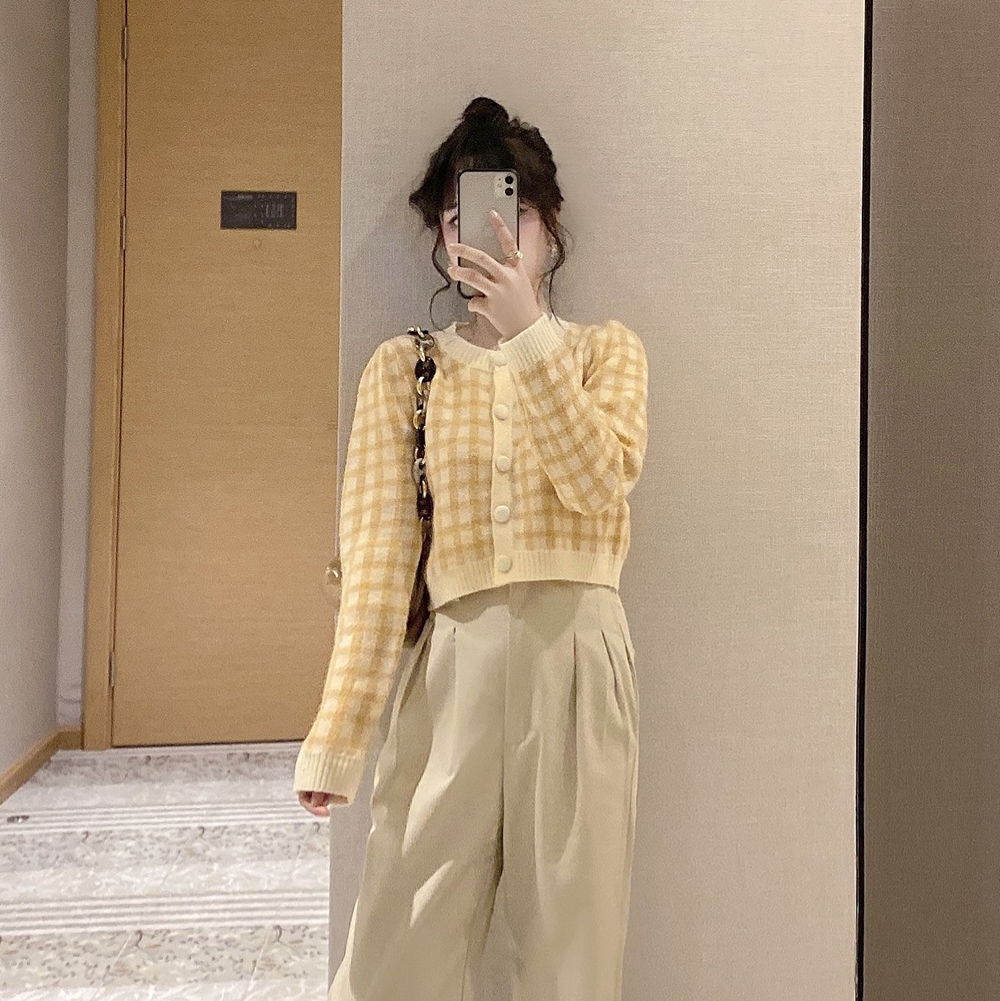 Miss K Women's Homemade Hot Girl Short Cardigan Spring and Autumn Single Breasted High Waist Cardigan Pleated High Cotton Trousers