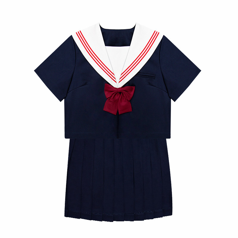 Less eyes: thick cyan red three JK sailor suit uniform skirt short sleeve uniform academic style suit full set