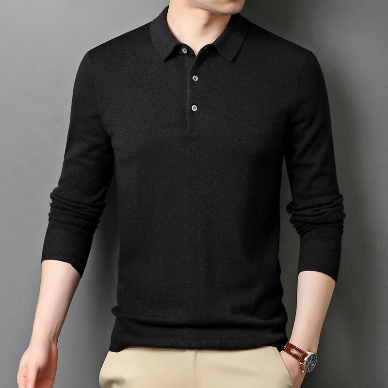 100 pure cashmere sweatshirt undershirt male long sleeve T-shirt men's roll collar thin autumn winter midlife daddy cashmere sweater