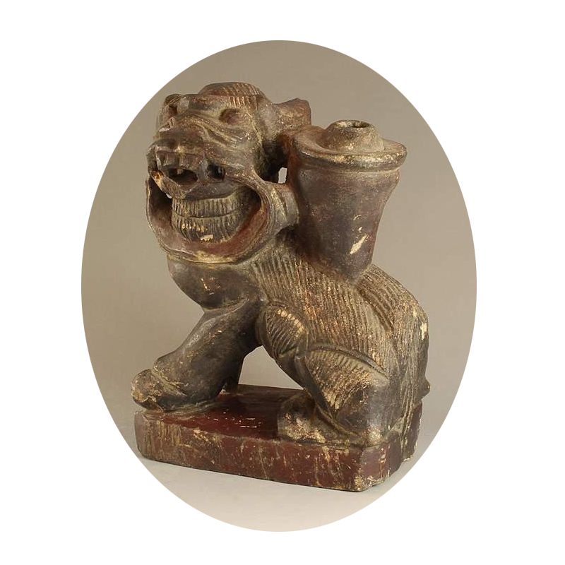 (Ghost City) Stone Sculptures Lions Big Swing Pieces Golden Gazebo Into Auction C1045