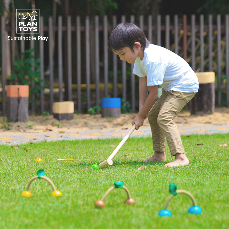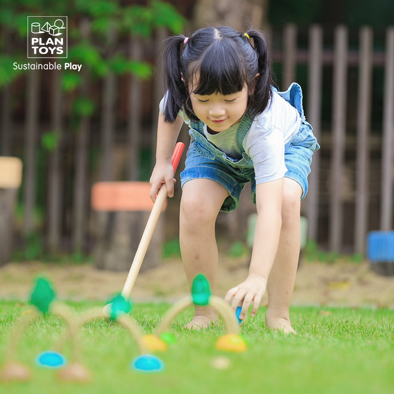 (Official direct sale)PlanToys wooden imported toys outdoor game gifts for boys and girls 5189 gateball set