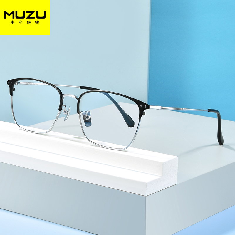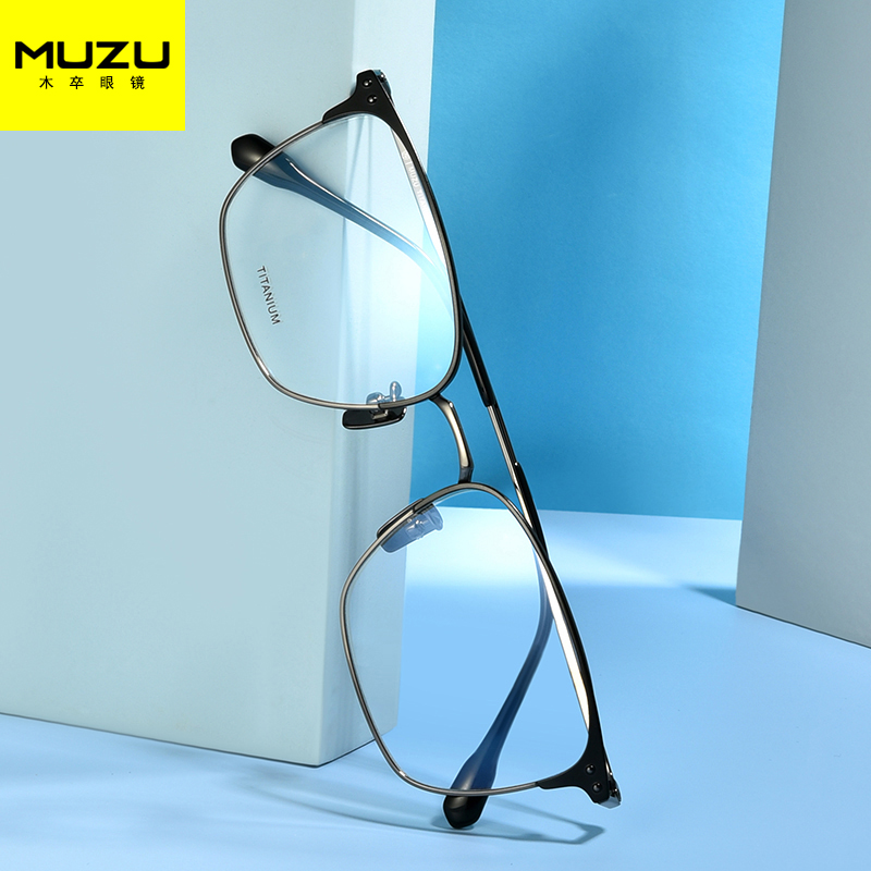 Wooden soldier pure titanium square frame glasses frame men's anti-blue light can be equipped with myopia glasses with degrees of personality ultra-light radiation protection women