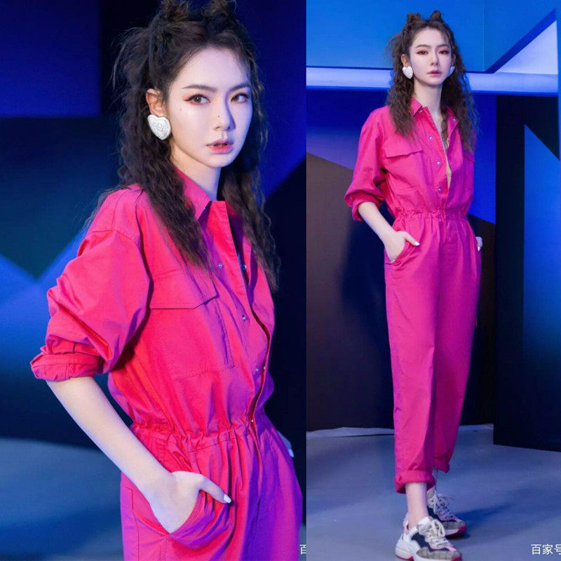 Serious quacks Qi Wei same waist long-sleeved jumpsuit Western style overalls loose casual pants female spring and autumn