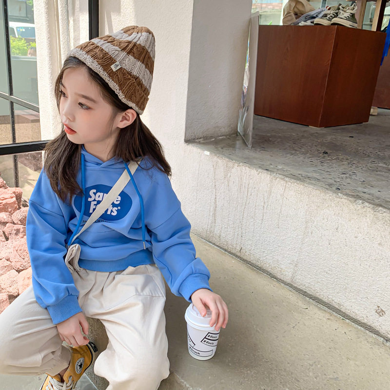 Girl's Lianhood Short version of the necropolis for the spring and autumn clothes 2022 Spring new Korean version of the Korean version of the children's blouses even hat