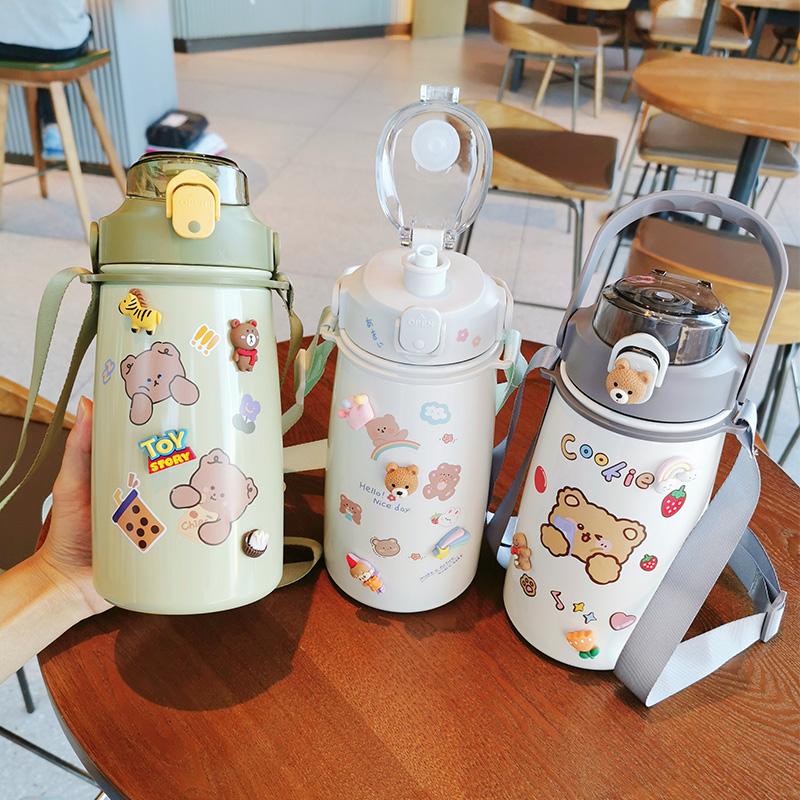 White with sticker pink with sticker blue with stickers Grey 1500ml Holding Baby Bag Straws 3D Accessories Stickers for green 1500ml 3