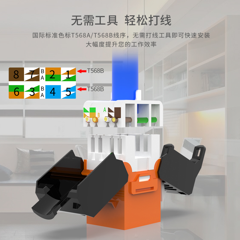 CAT6E unshielded voltage-free module in white style CAT6E unshielded voltage-free module in black and white CAT6A unshielded voltage-free module in yellow style CAT6E unshielded voltage-free module in red