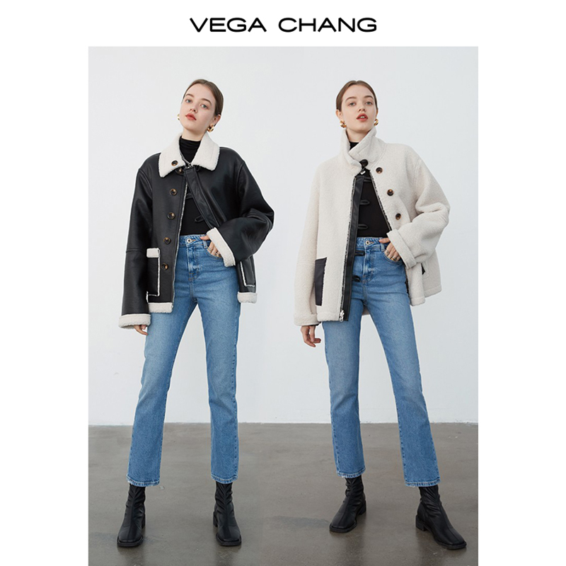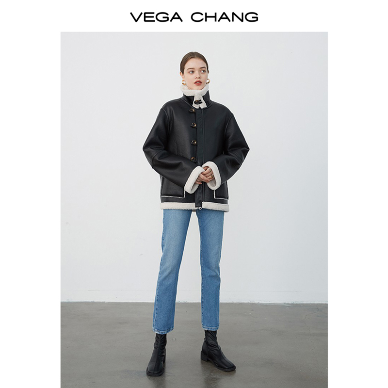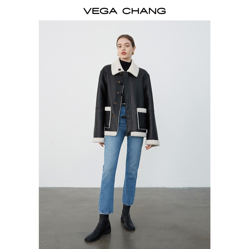 VEGA CHANG glint fur coat jacket female Korean version loose autumn and winter flip-flopted two wearing imitation lamb fur jacket