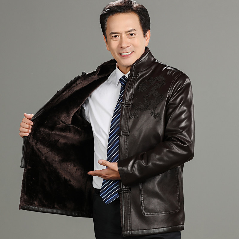 Middle Aged Tang Clothing Men's Leather Clothes Chinese Retro Big Size Coat Jacket Old Man Plus Suede Thickened Warm Grip Kshirt Cotton Padded Jacket Winter