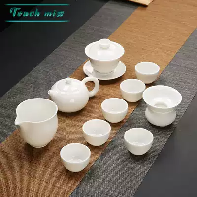 Touch Miss goat Jade white porcelain kung fu tea set set home simple bubble teapot cup full gift