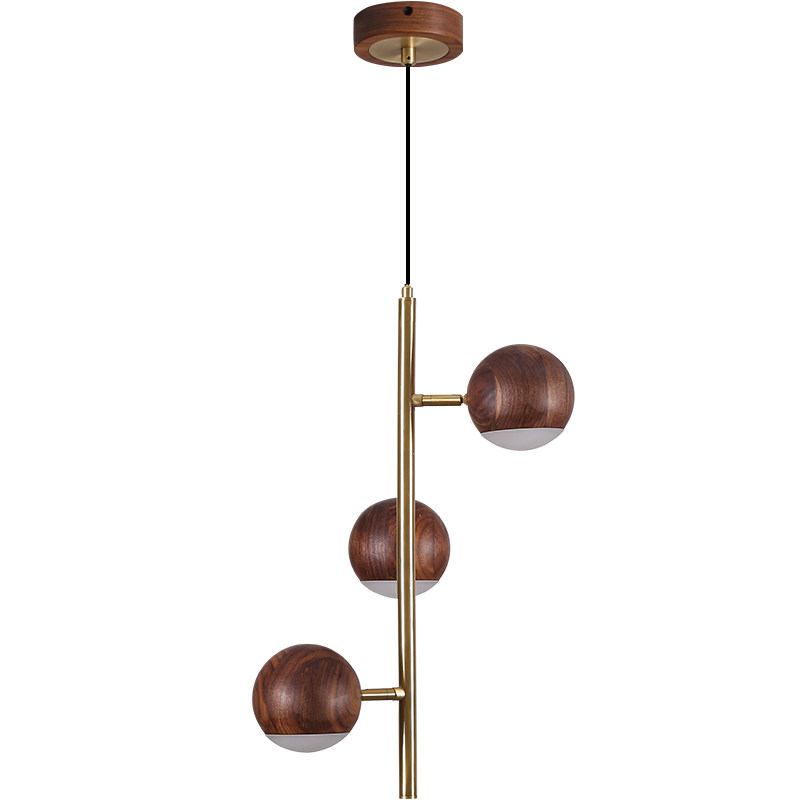 (6818-3)Vertical chandelier-walnut copper-three-color light (6818-3)vertical chandelier-wood color copper-three-color light