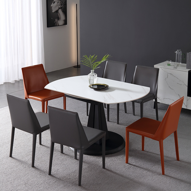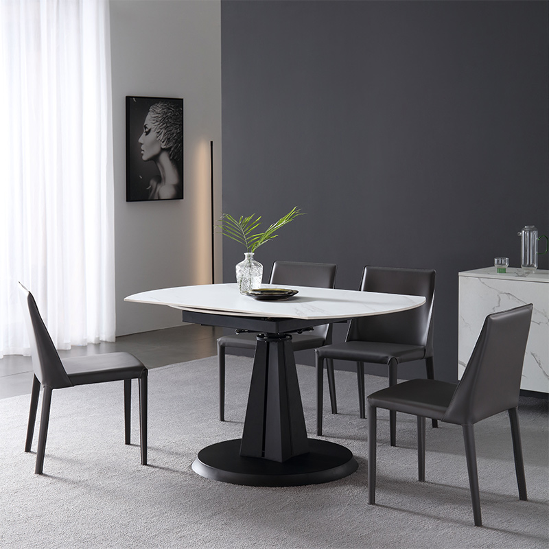 Italian minimalist slate dining table retractable folding round table rotating multi-functional household small apartment dining table and chair combination
