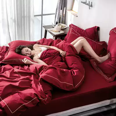 Simple cotton wedding four-piece group wedding bedding multi-piece set cotton quilt cover big red wedding room festive kit
