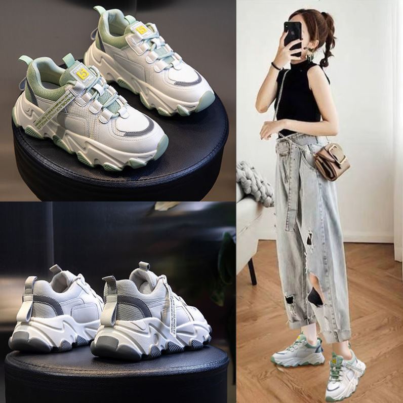 Flat Bottom Fashion Women Shoes Schoolgirls Old Daddy Shoes Breathable Junior High School Single Shoes Han Edition Running Shoes Net Face deep mouth