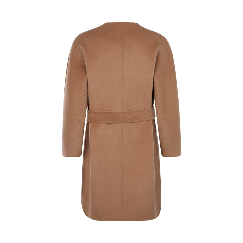 MAX MARA PURE wool CAMEL round neck belted nightgown double side pocket women's coat