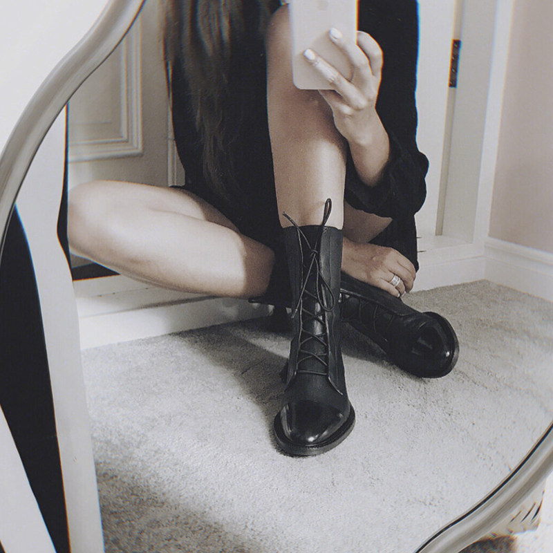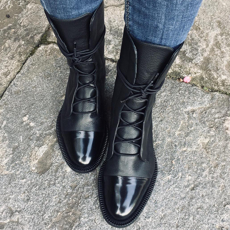 Trendy to Fried Street French Style Strap Boots Special lychee veins Europe and America 2022