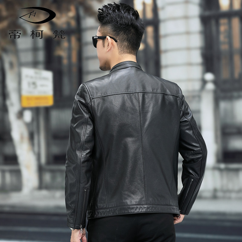 Haining leather leather men's first layer calfskin stand-up collar slim handsome short jacket single layer leather motorcycle clothing thin jacket