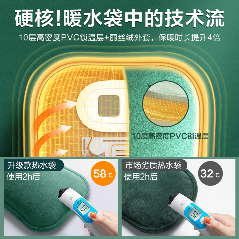 Dark Green (basic warm hand hot water bag smart charger) imported velvet★Water and electricity separation cherry powder (basic warm hand hot water bag smart charger) imported velvet★Hydropower separation dark green (heat