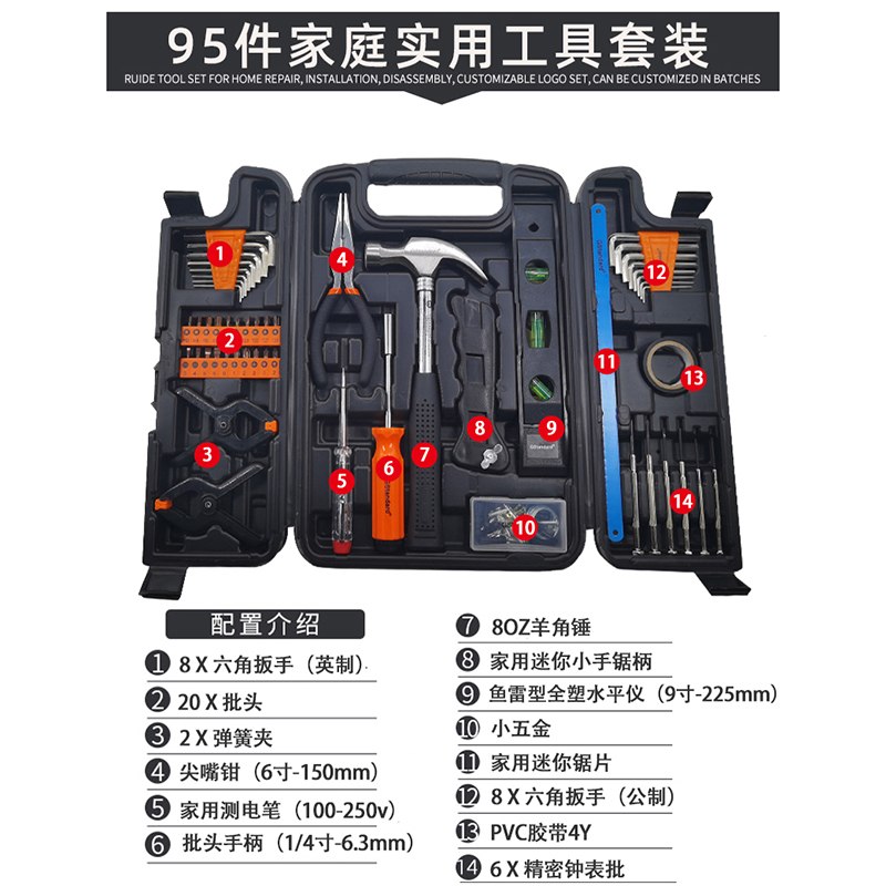 Gstandard 95 pieces of household luxury portable toolbox set Household maintenance Daquan electrician manufacturers