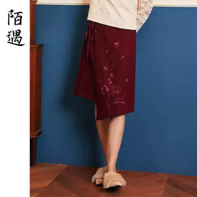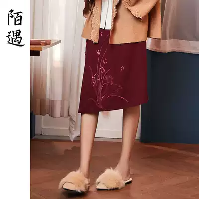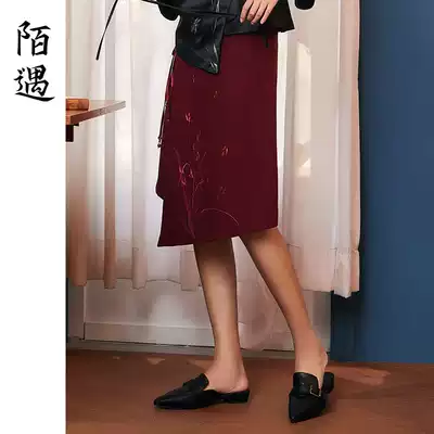 2020 autumn and winter New Chinese style retro embroidery high waist slim irregular hem embroidered woolen skirt